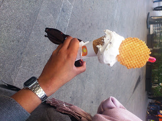 We noticed this guy literally trying to fork out a piece of a french fry from the gutter opening..spent about 10 mintues till he finally managed to get it. Yes he had an audience of 5 people just waiting to see if he ended up getting it. Those are the little luxuries of a holiday.. you get to pause more and see more :)